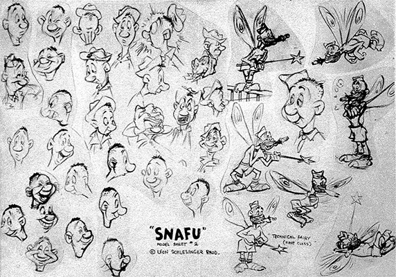 Sketches of Private Snafu and Technical Fairy. Credit to Nightlfight.com