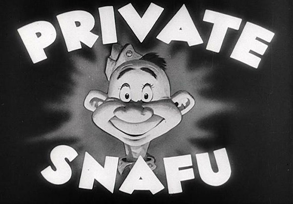 Opening card of the US army WWII short animated films "Private Snafu". Author: Chuck Jones